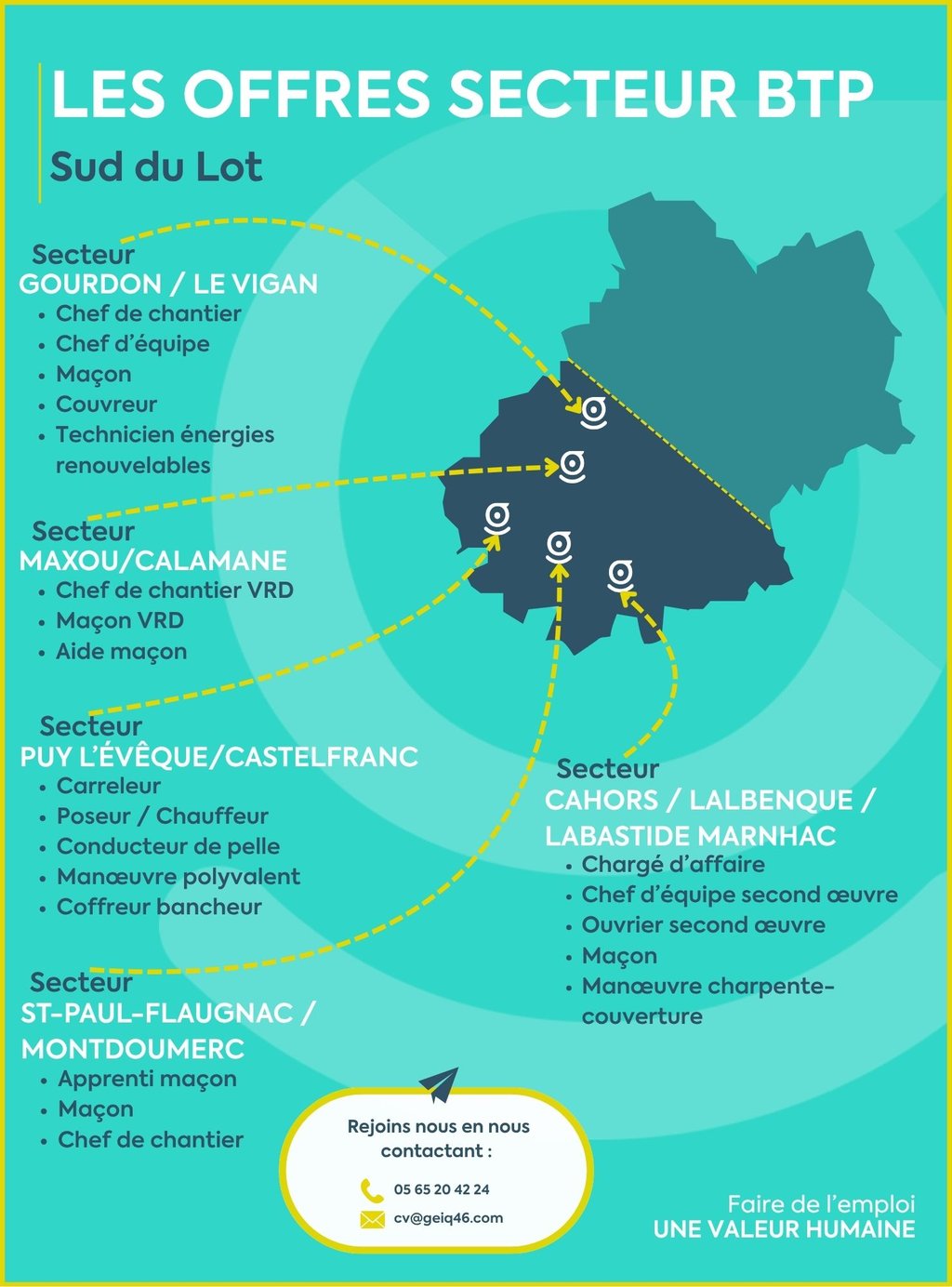 DES OFFRES d’EMPLOIS dans le secteur du BTP et dans de multiples aux secteurs sont à pourvoir dans le secteur.