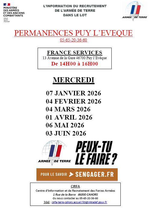 INFORMATION DU RECRUTEMENT DE L’ARMÉE DE TERRE DANS LE LOT