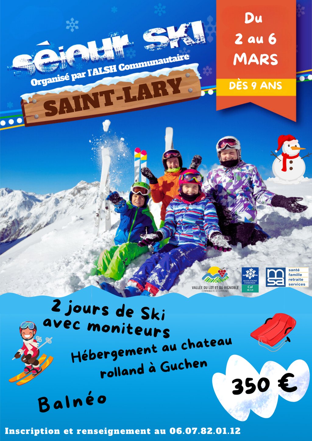 L’ALSH communautaire de la vallée du lot et du vignoble, site de Luzech et Sauzet, organise un séjour montagne à Saint Lary Soulan du 2 au 6 mars 2026 pour les enfants de 9 à 16 ans.