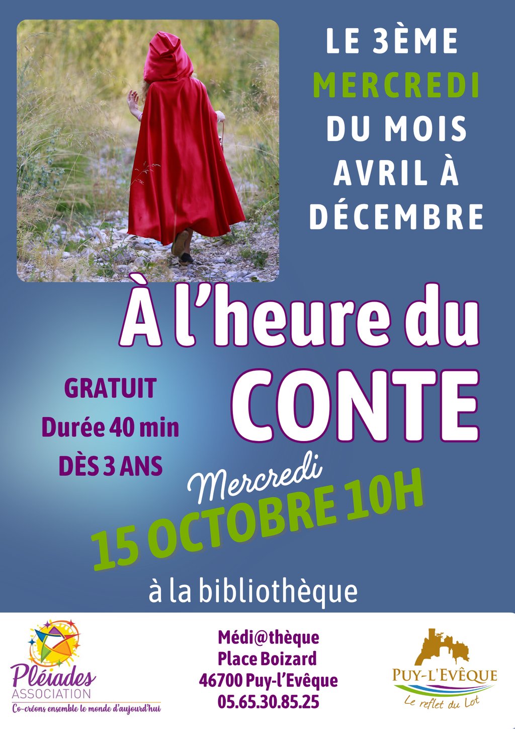 Mercredi 15 octobre : « L’heure du conte » à 10h avec Christelle Maury de l’association Pléiades