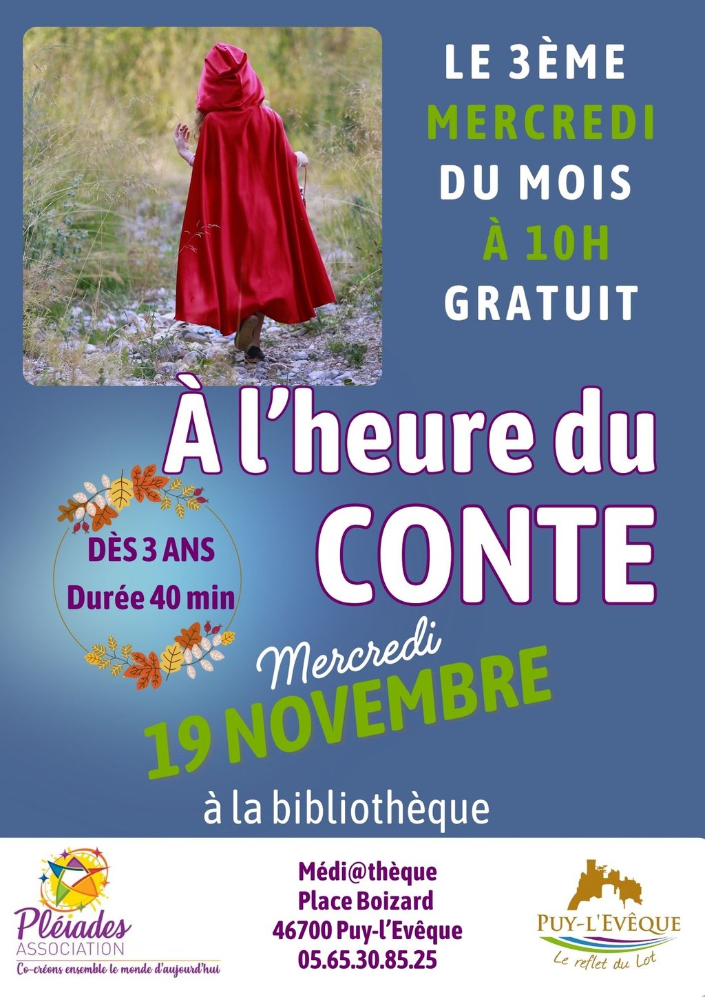 La médiathèque propose désormais une animation contée le 3ème mercredi du mois, animée par Christelle Maury de l'association Pléiades.