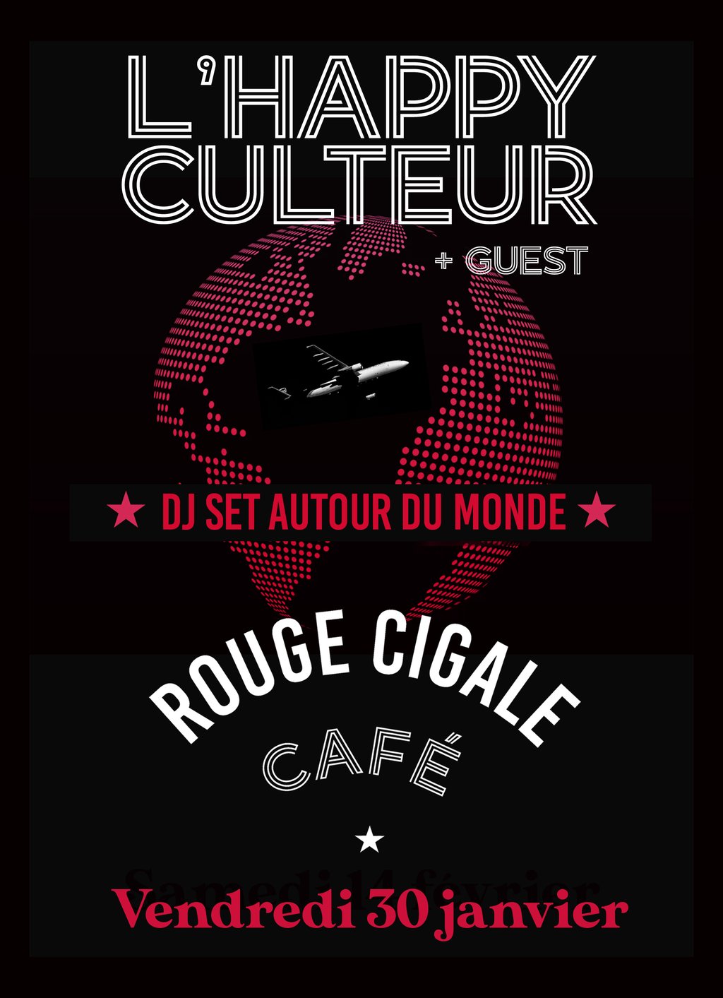 L'HappyCulteur, moitié dj moitié commandant de bord, vous invite à un voyage autour du monde, d'une capitale à l'autre. Dansez à chaque escale : New-York, Sao Paulo, Bamako, Lagos, Mexico, La Havane, Berlin, Marseille, New Delhi...