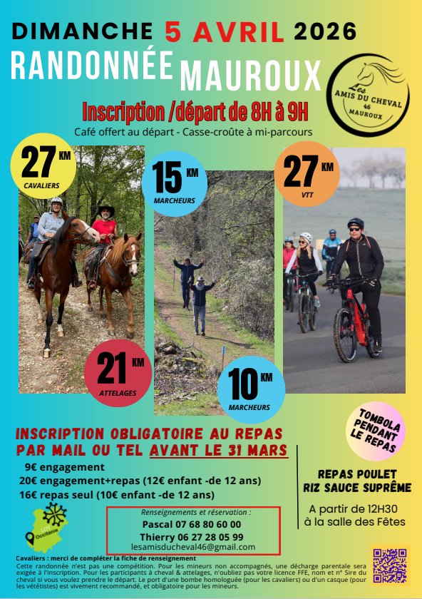 Pascal 07 68 80 60 00 Thierry 06 27 28 05 99 lesamisducheval46@gmail.com